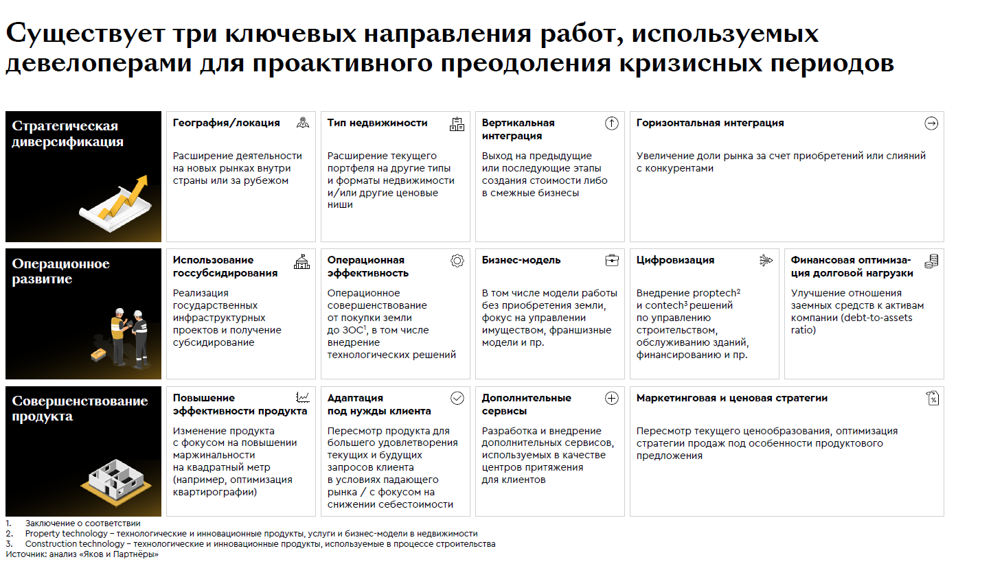 Для адаптации к новым условиям девелоперам рекомендуется внедрить пошаговую стратегию, включающую создание офиса по управлению изменениями, разработку дорожной карты и использование инструментов в трех ключевых направлениях.